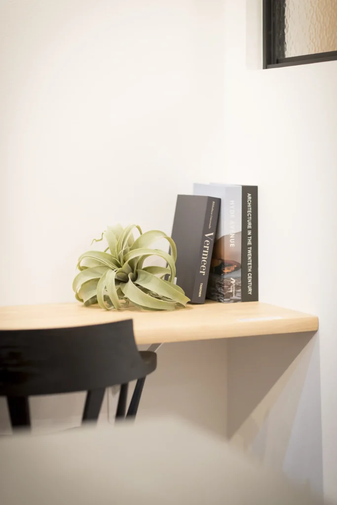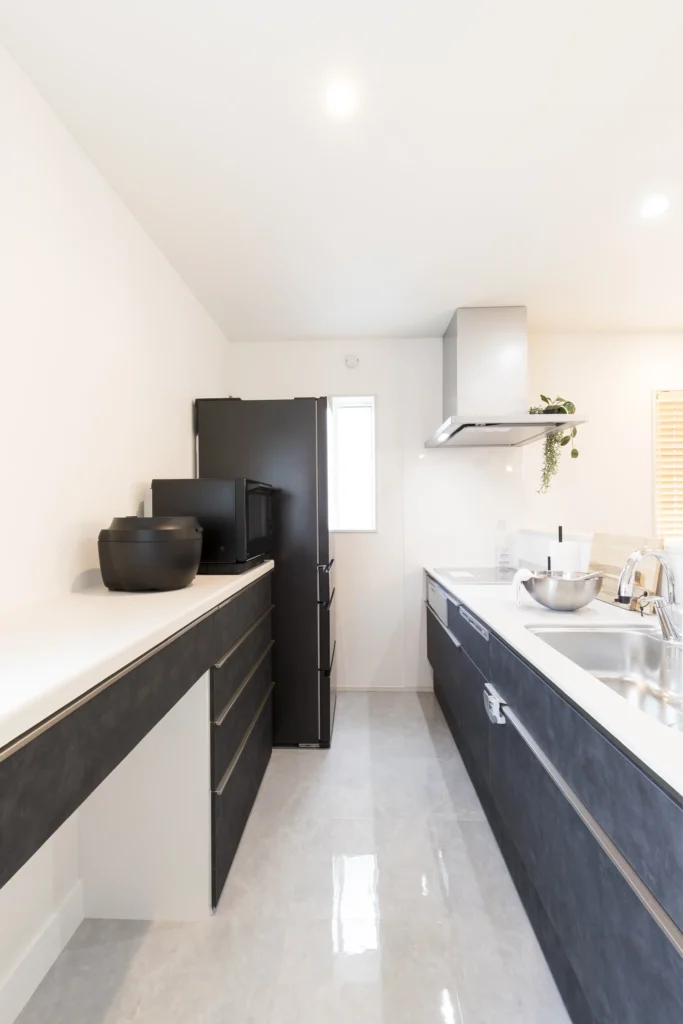 引出し収納も備えすっきりと片付く空間に。