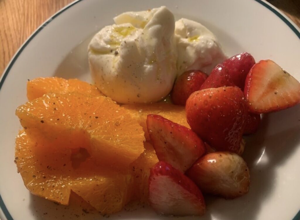 モンテボッカさんの美味しいイタリアンとワインを囲めば、自然と会話も弾みます。 特に、旬のイチゴやオレンジ、フレッシュなチーズが彩る一皿(写真のブッラータチーズ、最高でした!)など、目にも鮮やかな料理がテーブルを彩りました。